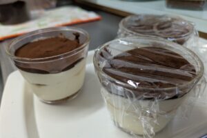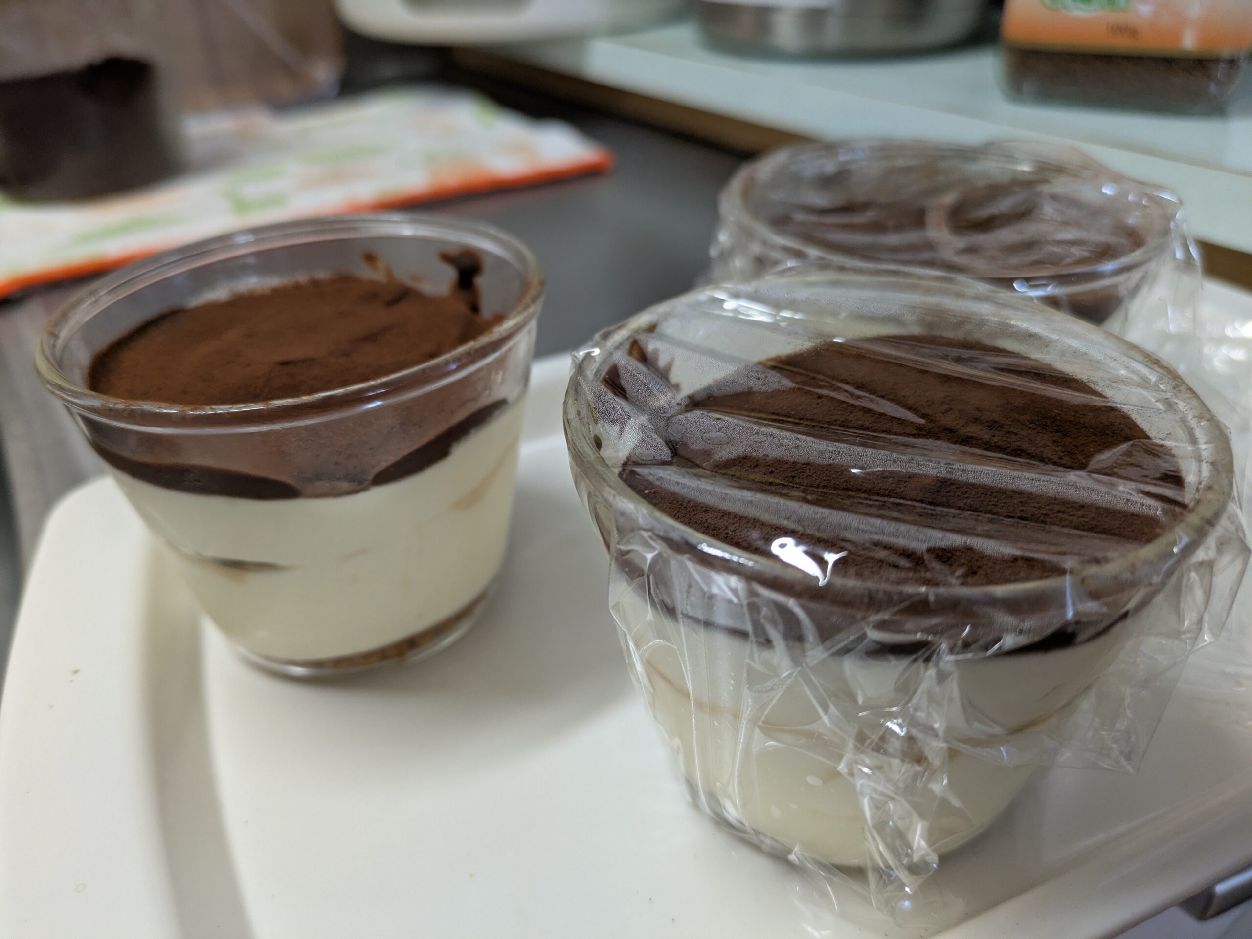 今日のおやつは、なんちゃってティラミス ですよ~ 一番上に溶かしたチョコを掛けて仕上げてみました