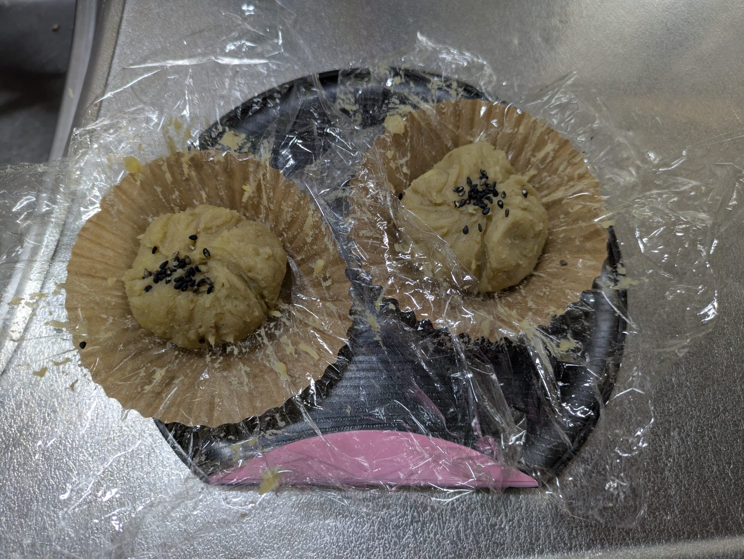 昨日の茶巾絞りをパイ生地で包んでみました❤️