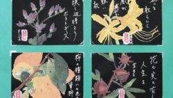 嘉島教室ミニギャラリーその〔120〕 嘉島教室 今回は生徒さんのお庭から届いたホトトギス、黄色彼岸花、筆柿、ハイビスカスローゼルがモデル。 筆柿は甘く(*^_^*)、ハイビスカスローゼルは酸っぱい(>_<) 2025.10.29