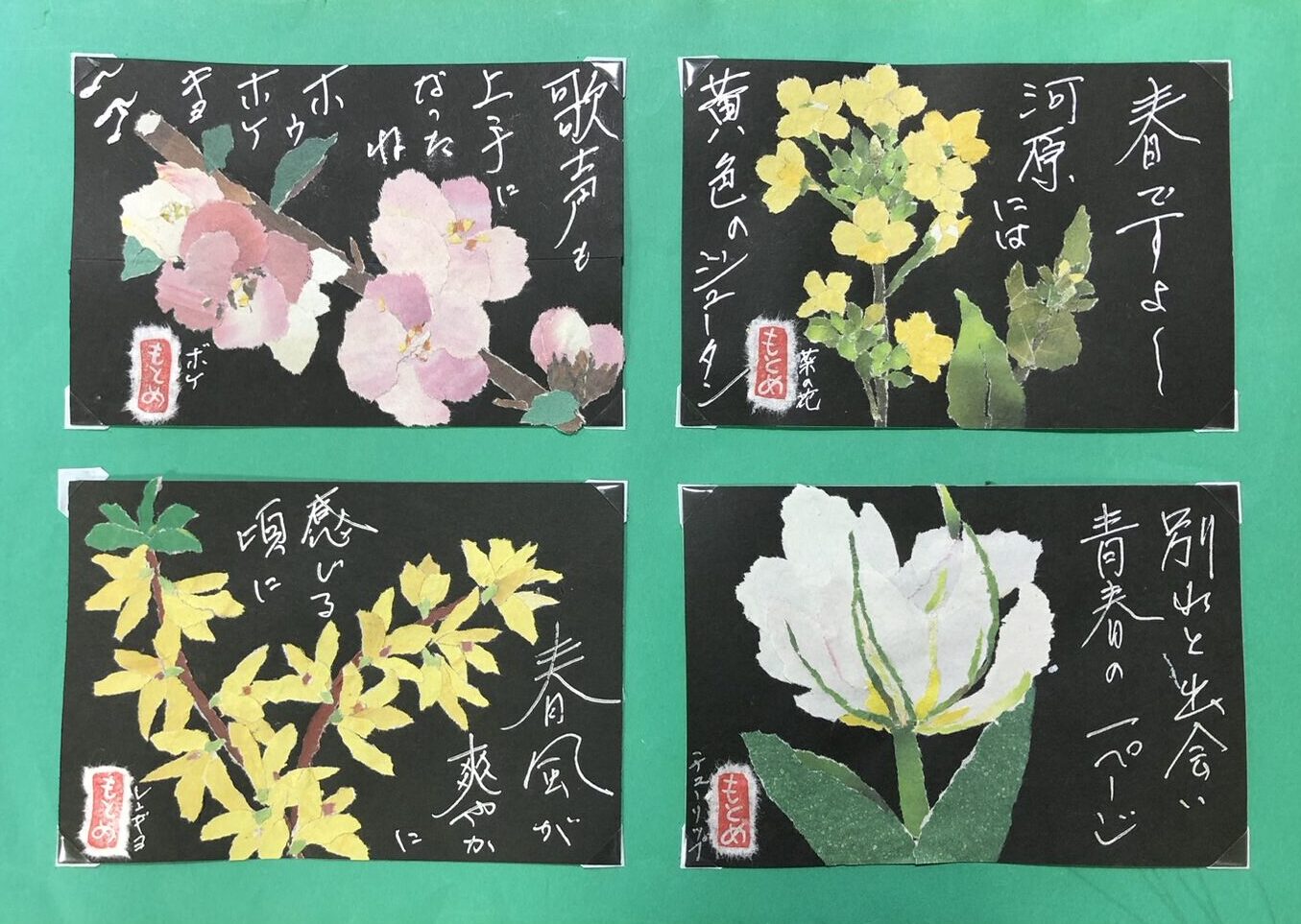 嘉島教室ミニギャラリーその〔133〕 2026.04.12 いろんな花が咲く春🌷🌸🌼 世界が明るく見えますね(*^_^*) 今回のモデルは生徒さんちのお庭からボケ、レンギョウ、チューリップ、近所の土手の菜の花