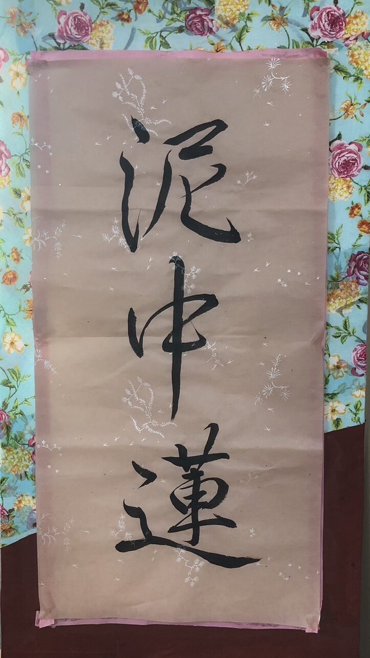 書道作品「泥中蓮」🖌 2025.07.08 今回の作品は「泥中蓮」🖌 蓮は汚い泥の中でも清らかな花を咲かせることから、汚れた環境の中にいても、それに染まらず 清く正しく生きるさまのたとえに使われるそうです。 綺麗な色の半紙に素敵な模様が入っているのが分かるでしょうか。 M井さん、今回も素敵な書をありがとうございました(*^_^*)